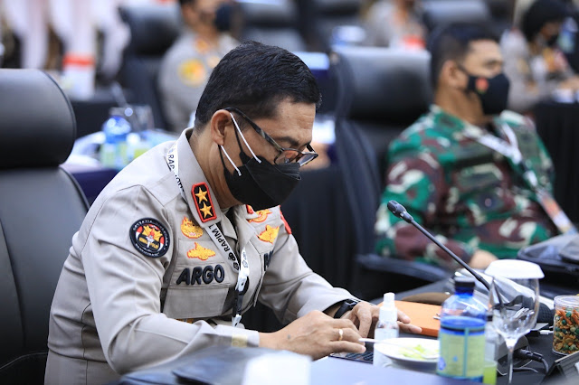 KABARTIMUR.ID JAKARTA – TNI-Polri menggelar pimpinan (Rapim) 2021 di Rupatama Mabes Polri, Senin (15/2/2021). Rapim dibuka oleh Panglima TNI Jenderal TNI Marsekal Hadi Tjahjanto dan Kapolri Jenderal Listyo Sigit Prabowo. Turut hadir perwakilan PJU Mabes TNI dan Polri secara fisik. Sementara 15 pangdam dan 34 polda secara virtual.